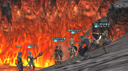 ![]() 後半戦。 傲慢からアデン城の北を迂回し、火焔に突入しようとしたところで、丘陵部にPTモンスの大群を発見! 自分から見てどれも桃〜赤名だが、興奮全開で特攻。 |