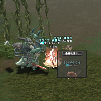 | どうにも「ドゥームナイト」のごっついイメージが強いので、シャックル先生とか骨弓とかだとみすぼらしい感が否めない。 とはいえ、もちろん桃やら赤やらの連中なので攻撃は侮れない。 てゆーか、 メンツも揃わず狩り始める前に全滅しかけましたが。 初っ端から愉快な幕開けとなったが、PT立て直して狩り開始。 |